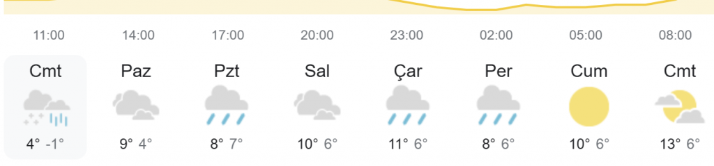 Meteoroloji yetkilileri, kar yağışının Pazar gününe kadar etkili olacağı ve Pazardan itibaren hava sıcaklığının tekrar mevsim normallerine döneceğini belirtti.